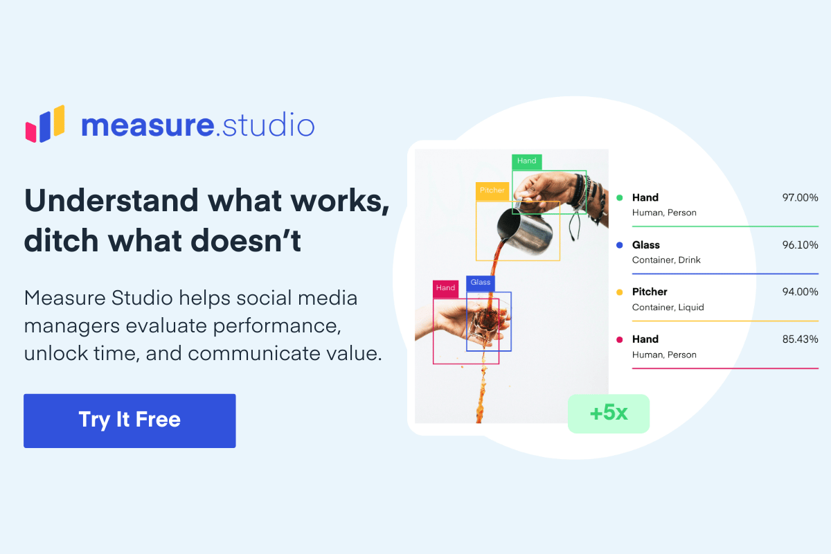 I love an intuitive tool that spits out data in ways that are actually helpful. Measure Studio is pretty fantastic at just that. They know social teams don’t have the time to do manual math or dig through needlessly complex dashboards to figure out what’s actually working.