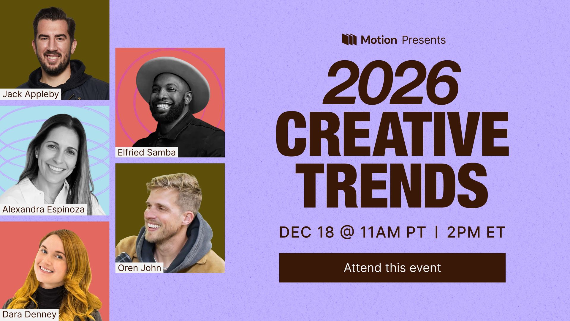 Pretty geeked about this one. I’m speaking at Motion’s 2026 Creative Trends event this month alongside some folks I genuinely look up to, and it’s totally free to watch.